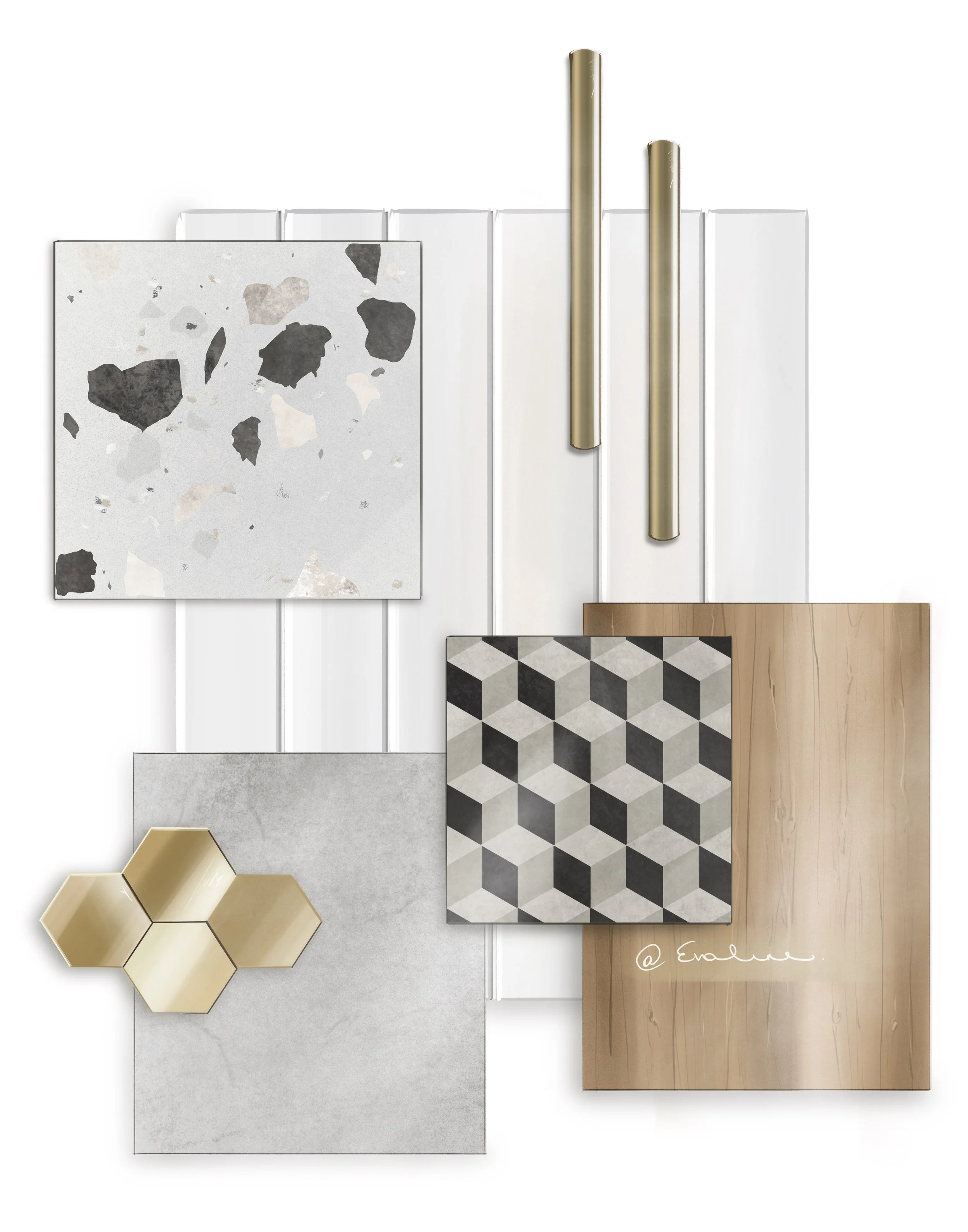 Every design begins with exploration, gathering ideas, colors, and emotions that form the foundation of a concept.